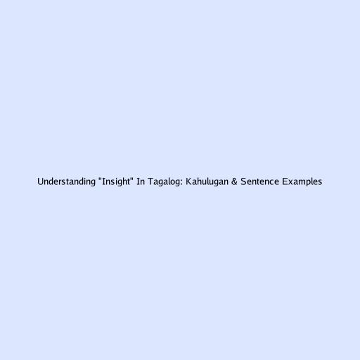 Understanding "Insight" In Tagalog: Kahulugan & Sentence Examples