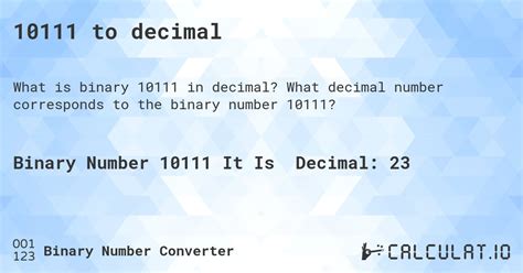 In conclusion, the number 10111 is far more than just a collection of digits. It’s a prime number with inherent mathematical significance, a binary sequence that translates to the decimal number 23, and a potential identifier or pattern in various other fields. Understanding these different facets of 10111 allows us to appreciate the interconnectedness of mathematics, technology, and the world around us. Keep exploring, keep questioning, and keep discovering the amazing world of numbers!