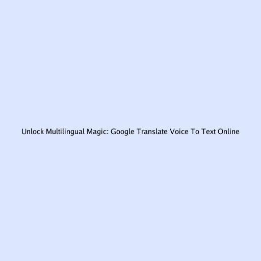 Unlock Multilingual Magic: Google Translate Voice to Text Online