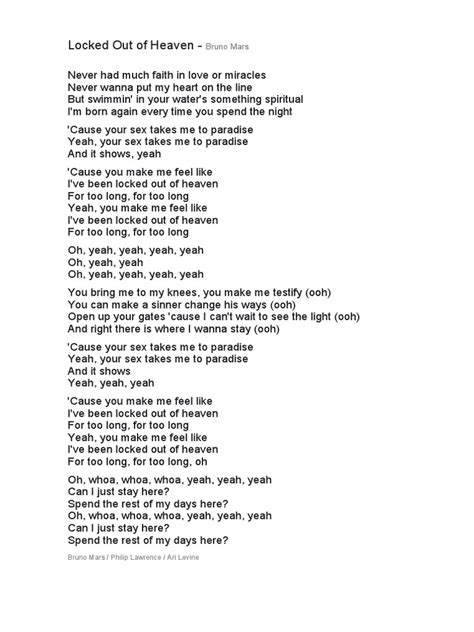 Hey music lovers, ever found yourself completely obsessed with a song? Like, you just can’t stop listening, dissecting every lyric, and trying to figure out what the heck the artist was really trying to say? Well, if you’ve ever felt that way about Bruno Mars’ mega-hit, “Locked Out of Heaven,” then you’re in the right place! We’re gonna do a deep dive, guys, into the meaning of the song ‘Locked Out of Heaven’ , uncovering its hidden layers and exploring the possible interpretations behind those catchy lyrics and that irresistible beat. So, grab your headphones, crank up the volume, and let’s unlock the secrets of this timeless tune! This song is one of the most popular songs from Bruno Mars, so it is important to analyze the meaning of the song.
