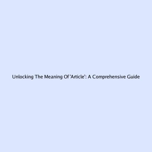 Unlocking The Meaning Of 'Article': A Comprehensive Guide