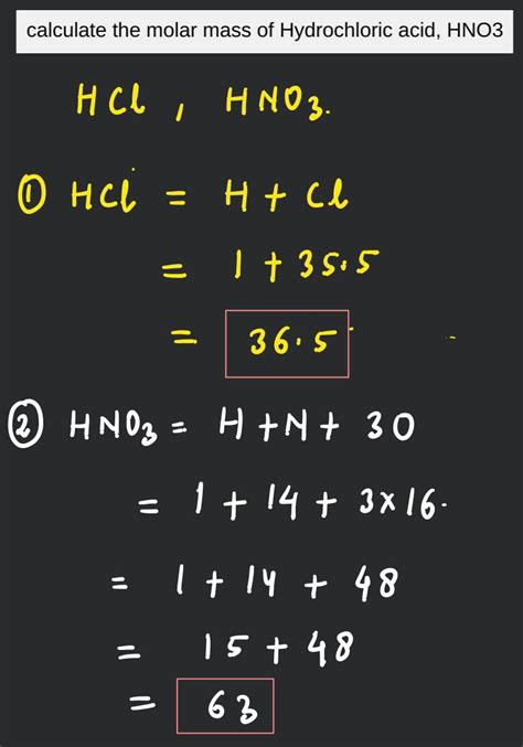 Hey there, chemistry enthusiasts! Ever wondered about the molar mass of HNO3 ? Well, you’re in the right place! We’re diving deep into the fascinating world of nitric acid (HNO3) to unravel the mystery behind its molar mass. This isn’t just about crunching numbers; it’s about understanding the very essence of this important chemical compound. So, grab your lab coats (metaphorically, of course), and let’s get started. We’ll explore what molar mass is, how to calculate it, and why it matters in the grand scheme of things. Get ready to have your chemistry knowledge bumped up a notch! The molar mass of HNO3 is a fundamental concept in chemistry, playing a crucial role in various calculations and applications. Understanding it is like having a key to unlock a whole world of chemical possibilities. But what exactly is molar mass, and why is it so important? Molar mass, in simple terms, is the mass of one mole of a substance. A mole is a unit of measurement used to express the amount of a substance, much like how a dozen represents 12 items. One mole of any substance contains Avogadro’s number of particles (6.022 x 10^23), which is a mind-bogglingly huge number. So, when we talk about the molar mass of HNO3, we’re essentially referring to the mass of 6.022 x 10^23 molecules of nitric acid. Now, you might be thinking, “Why do we need such a specific unit?” Well, it all boils down to stoichiometry, the branch of chemistry that deals with the quantitative relationships between reactants and products in chemical reactions. Molar mass allows chemists to convert between the mass of a substance and the number of moles, which is essential for predicting the outcome of chemical reactions and determining the amounts of reactants needed. Let’s start breaking down the molar mass of HNO3 and all that it involves!