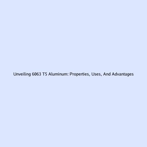 Unveiling 6063 T5 Aluminum: Properties, Uses, And Advantages