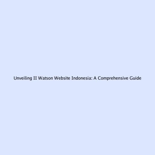 Unveiling II Watson Website Indonesia: A Comprehensive Guide