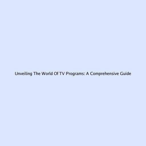 Unveiling the World of TV Programs: A Comprehensive Guide