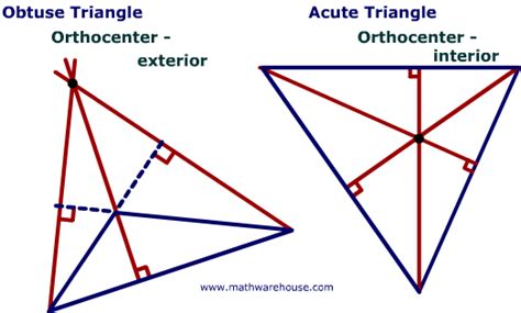 Okay, let’s bring it all together. Take an obtuse-angled triangle . As we know, one of its angles is greater than 90 degrees. When you draw the altitudes, they will intersect outside the triangle, forming the orthocenter. In a right-angled triangle , the orthocenter is right at the vertex of the right angle! The centroid (where the medians meet) will always be inside the triangle, regardless of whether it’s obtuse or right-angled. The location of the circumcenter (where the perpendicular bisectors meet) and the incenter (where the angle bisectors meet) also vary depending on the triangle’s shape. Exploring these points in different types of triangles gives a deep insight into their properties and how they are all linked. You can draw these triangles and lines yourself. It is the best way to see these points. You will be able to discover the locations yourself and understand why they are where they are. This will make it easier to understand this concept.