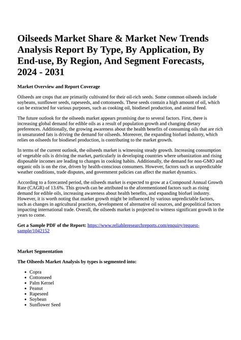 The USDA (United States Department of Agriculture) plays a pivotal role in providing data and insights into oilseed production. These reports are goldmines of information, offering a comprehensive overview of current and projected yields, acreage, and overall production volumes. Why is this so crucial? Well, these reports influence market prices, trade policies, and even the strategic decisions made by farmers around the globe.