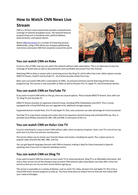 For those of you who’ve ditched traditional cable but still want access to the CNN news live stream , you’re in luck! Several live TV streaming services now bundle CNN into their channel lineups. Services like YouTube TV , Hulu + Live TV , Sling TV (specifically the Sling Orange package), and AT&T TV (now DirecTV Stream) all offer CNN. The catch, guys, is that these services typically require a monthly subscription fee, which can range from around \(35 to \) 70+ per month, depending on the package you choose. However, when you compare this to the cost of traditional cable, it can often be a more affordable and flexible option. You get CNN, plus a whole host of other channels, and you can usually cancel or switch plans with much less hassle than dealing with a cable company. It’s all about finding the package that best suits your viewing habits and budget. Remember to check the specific channel lineup for each service before subscribing, as they can vary. Some might even offer free trials, which is a fantastic way to test out the CNN news live stream and the service itself before committing.
