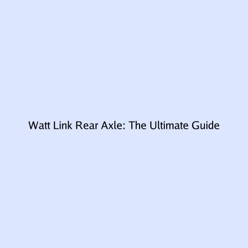 Watt Link Rear Axle: The Ultimate Guide