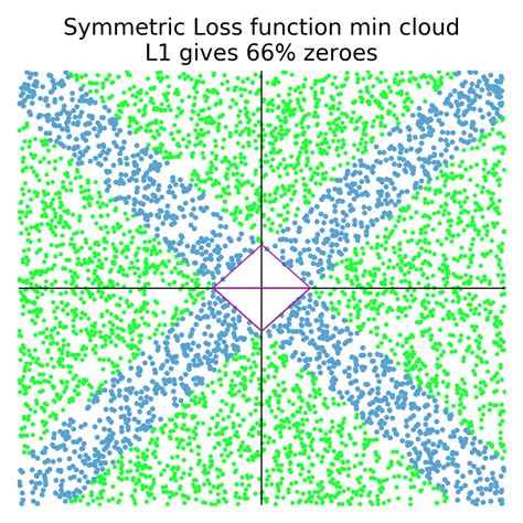Why does this happen? Think about the geometry of the L1 norm. When you add the L1 regularization term to the loss function, you’re essentially adding a constraint that the sum of the absolute values of the weights must be less than a certain value. This constraint creates a diamond-shaped region in the weight space. The optimal solution (the minimum of the loss function) often occurs at the corners of this diamond, where some of the weights are zero. In other words, the L1 penalty encourages sparsity in the weight vector.