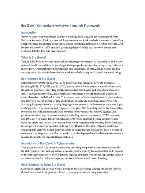 Zeek ’s scripting language lets you define exactly what you want to monitor and how you want to respond. You can write scripts to detect specific types of traffic, log custom events, and even take automated actions. It’s like giving Zeek a brain upgrade. For example, you can create a script that looks for specific patterns in HTTP traffic, like requests to known malicious URLs or suspicious user-agent strings. Or you could write a script that monitors DNS traffic for unusual domain names or excessive DNS queries. The possibilities are endless. Just remember to test your scripts thoroughly to make sure they’re working as expected and not causing any performance issues.